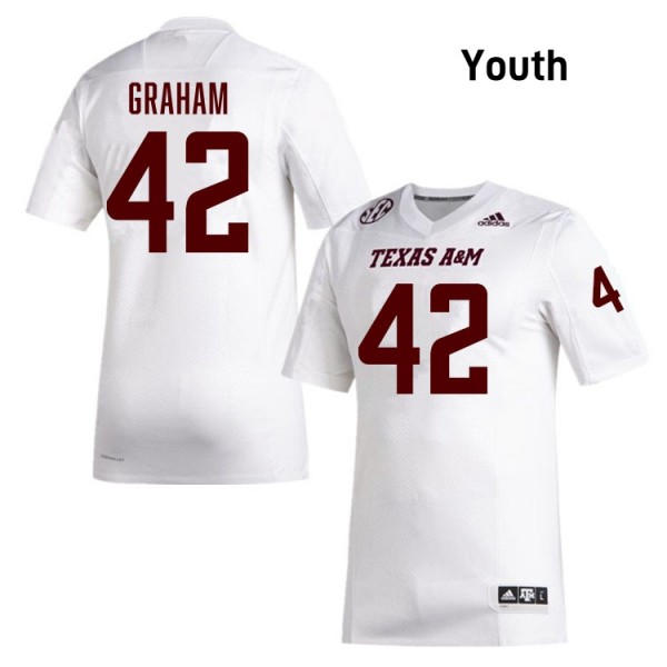 Boomer Graham Aggies College Football #42 Youth Player Jersey - White