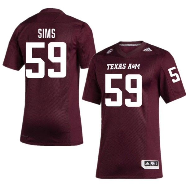 • Chace Sims Aggies Mens University College Football #59 Jerseys - Maroon