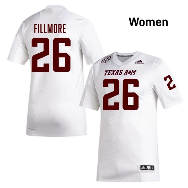 • Dashawn Fillmore Texas A&M University Official #26 College Football Women's Jerseys - White
