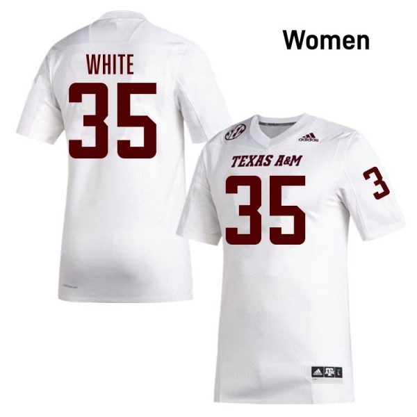 Jared White Aggies 2025 #35 College Football Women Jerseys - White