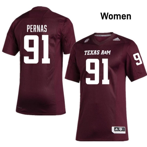 • Lucas Pernas Texas A&M College Football Women #91 NCAA Jersey - Maroon