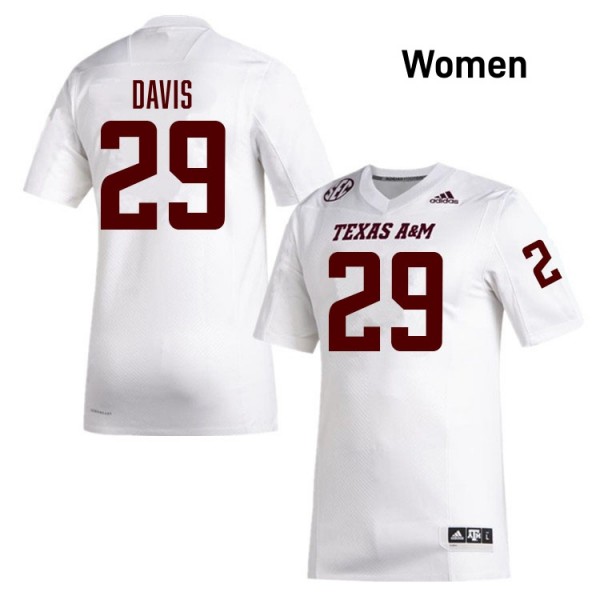 • Myles Davis TAMU College Football #29 High School Women Jerseys - White