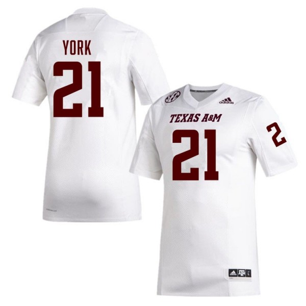 Taurean York Texas A&M University College Football University Men's #21 Jerseys - White